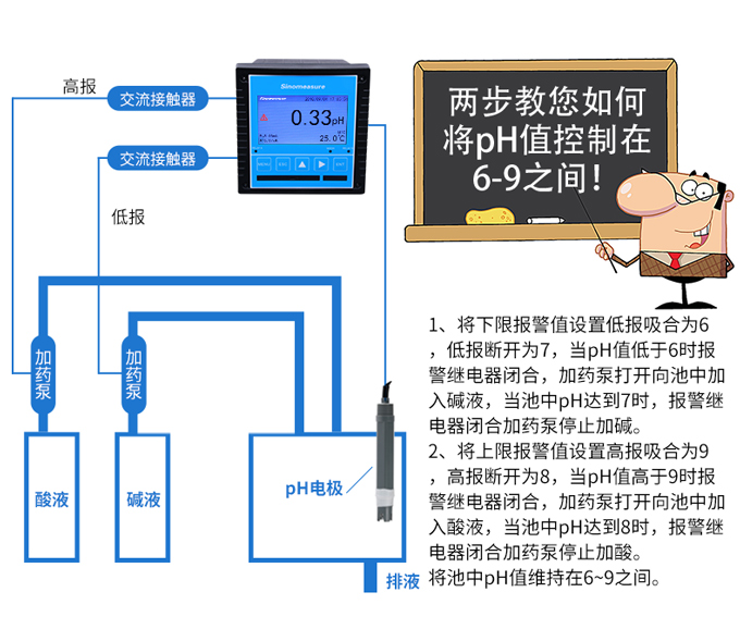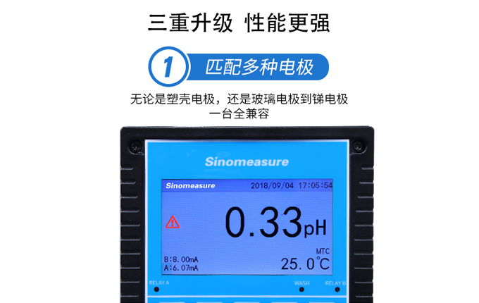 聯測大屏pH計是一款廣泛應用于火電、化工化肥、冶金、環保、制藥、生化、食品和自來水等溶液中PH值或ORP值和溫度的連續監測。 可實現數據傳輸與本地數據記錄,具備將數據上傳至環保局的功能。