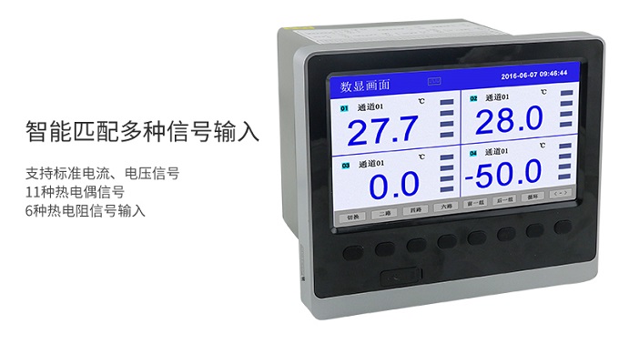 應(yīng)用行業(yè) SIN-R6000C系列無紙記錄儀為萬能信號輸入,能夠記錄溫度、溫濕度、電流、電壓、壓力、 流量、液位等現(xiàn)場所有信號。