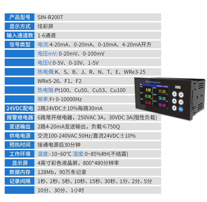 聯測儀表SIN-R200T無紙記錄儀1~6路可選